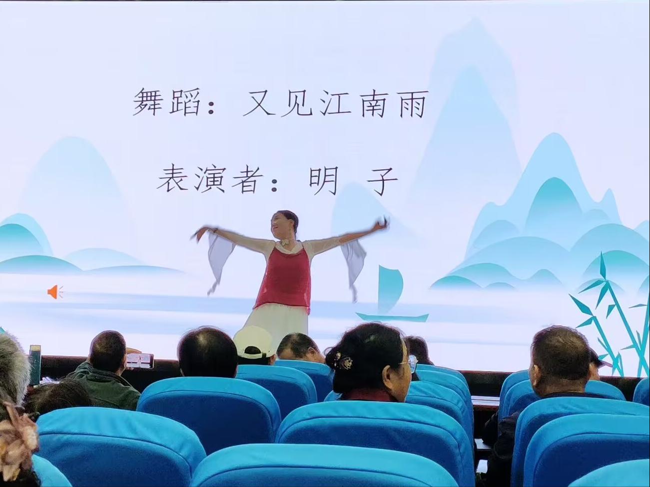 首先,该会王凡平会长一曲独唱《满江红》,以深沉浑厚的嗓音,将岳飞词作中的激昂慷慨与赤诚报国之心演绎得淋漓尽致,瞬间点燃了现场气氛。紧接着,该会龚慧珠副会长的古诗吟诵《诗经·蒹葭》配以明子老师的优雅伴舞,诗韵清雅,舞姿曼妙,完美再现了《诗经》中那朦胧缥缈、求之不得的秋水伊人之境,令人沉醉。该会陶其骖副会长的独唱《情怨》,则以其独特的韵味和细腻的情感处理,为现场带来别样的艺术享受。